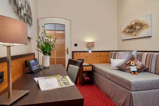 Unser größtes Hotelappartement mit ca. 60 qm. Erleben Sie Königliches Wohnen in hellen freundlichen Räumen mit Möbel in Altholz-Optik und einem großzügigem Vorraum. Das Wohnzimmer und Schlafzimmer sind getrennt. Jedes Zimmer verfügt über einen Flachbildschirm. Der große Sonnenbalkon lädt zum Verweilen ein. Genießen Sie einen traumhaften Blick auf die Gartenterrasse sowie die im Hintergrund liegende Bergkulisse.
